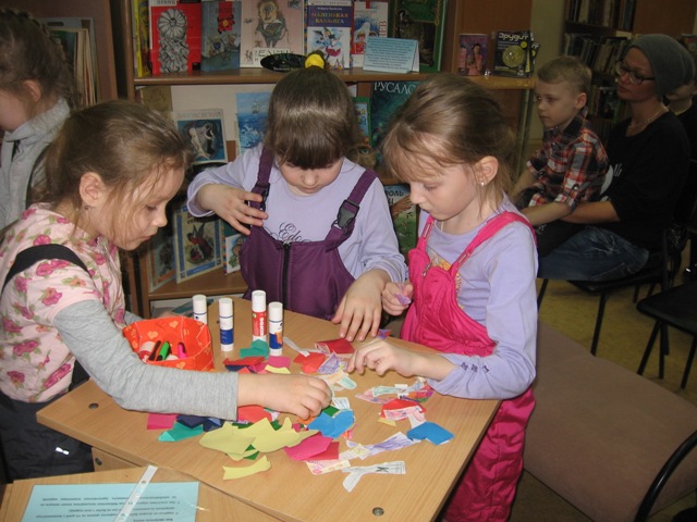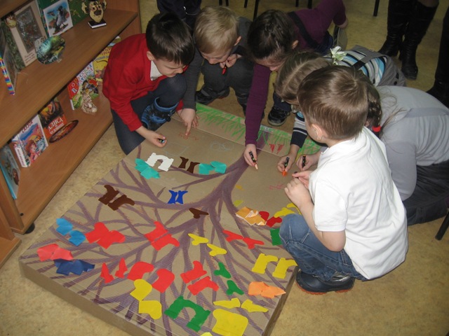 В библиотеке ребята также узнали, как создать Чудо-дерево из сказки Чуковского. Дети с огромным удовольствием развешивали на веточки дерева сапожки, туфельки, тапочки, носочки. Дерево получилось по-настоящему чудесным и очень ярким.