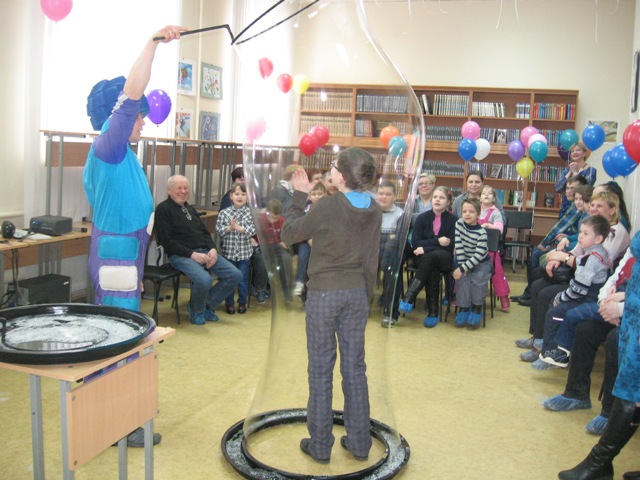 Особенных ребят в библиотеке ждали мультяшные герои Фиксики и шоу мыльных пузырей. Юные гости библиотеки не только наблюдали завораживающее действо, но и сами попробовали создать гигантские мыльные пузыри. Самые отважные дети попробовали поиграть с Фиксиками, а потом все желающие в свободной и непринужденной обстановке начали танцевать с воздушными шариками.