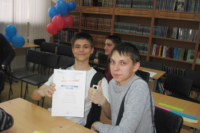 Также были подведены итоги по оформлению окон библиотеки во время фестиваля. Замечательный коллаж «Мы помним и гордимся» сделали Степанова Софья, Фертикова Юлия и Чекасова Лада из изостудии «Батик» Ленинского района. Все активные участники получили заслуженные благодарственные письма и призы.