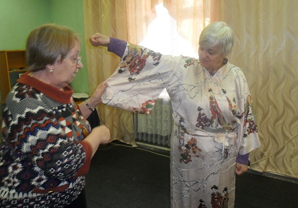 Участников встречи ждал подробный обзор книг и журналов по японскому рукоделию. Рукодельницы узнали много нового: как сделать «гортензию по-японски», что из себя представляет вышивка «сашико», чем отличается японское искусство «амигуруми» от обычного вязания, и что такое текстильное оригами. На занятии можно было узнать, как повязать японский шейный платок, и даже примерить настоящее кимоно.