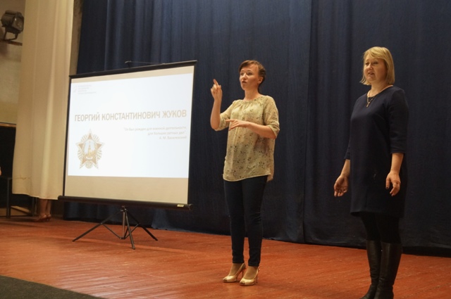 Мероприятие прошло на площадке Свердловского регионального отделения Всероссийского общества глухих (ВОГ). Сотрудники Муниципального объединения библиотек города Екатеринбурга подготовили и провели обзорную лекцию «Наш Жуков».