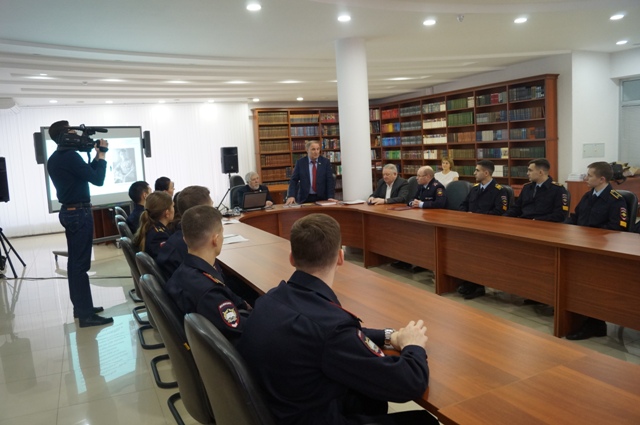 14 февраля 1948 года Георгий Константинович Жуков прибыл на Урал, чтобы возглавить Уральский военный округ. 70-летию этого события и была посвящена встреча, на которую пришли курсанты Уральского юридического института МВД России. С докладом о деятельности великого полководца выступил председатель Фонда Г.К. Жукова Анатолий Войтенко. Встреча прошла при участии Общественного совета при ГУ МВД России по Свердловской области.