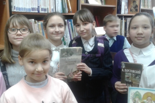 Школьники познакомились с интересными фактами из жизни и творчества Константина Паустовского. Сотрудники библиотеки представили ребятам детские произведения автора – повести и рассказы.