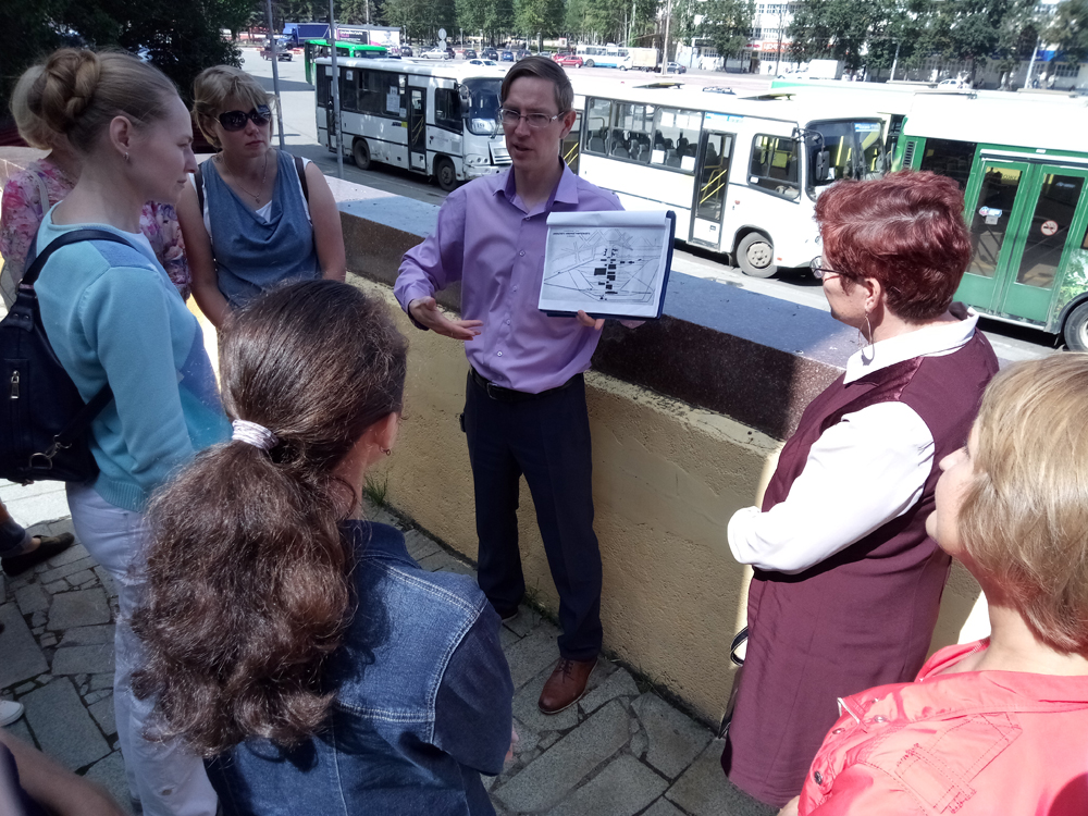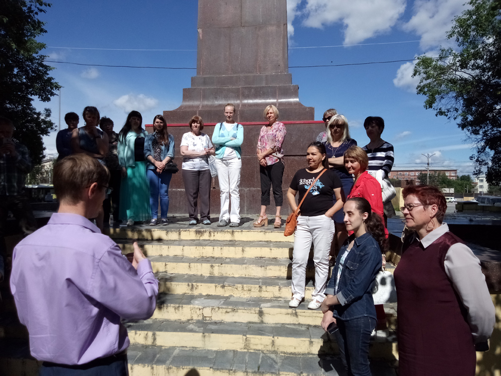 Гидом для библиотечных специалистов стал Сергей Каменский, директор Музея истории Екатеринбурга и автор проекта-победителя фонда Потанина. Сергею удалось выиграть грант на реализацию проекта «Уралмаш: производство будущего».