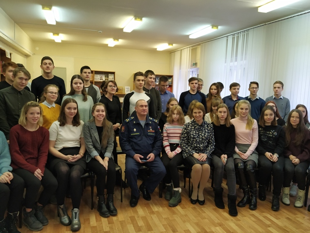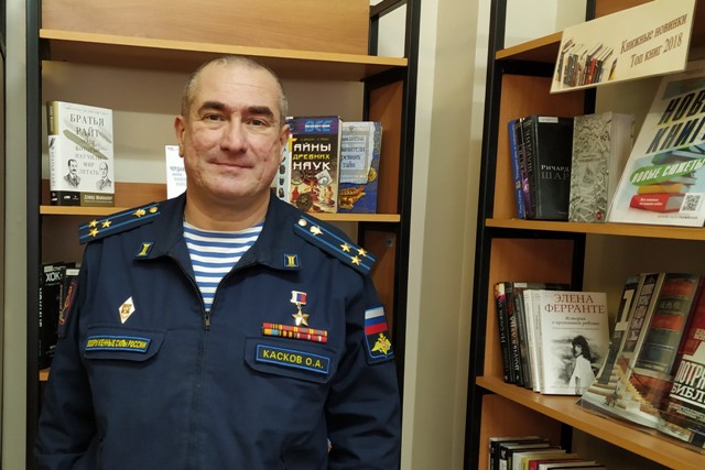 На встречу, организованную в рамках программы по патриотическому воспитанию, пришли учащиеся 10-11 классов. Они познакомились с Героем России Олегом Касковым.