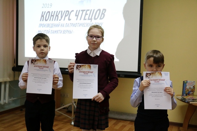 Победителями отборочного тура стали:Первая возрастная категорияМатвей Нехорошков, 2 класс, Василий Лебедев-Кумач «Два друга»Варвара Макаровских, 4 класс, Ольга Маслова «Пусть будет мир»Матвей Мишкин, 1класс, Андрей Дементьев «Баллада о матери»