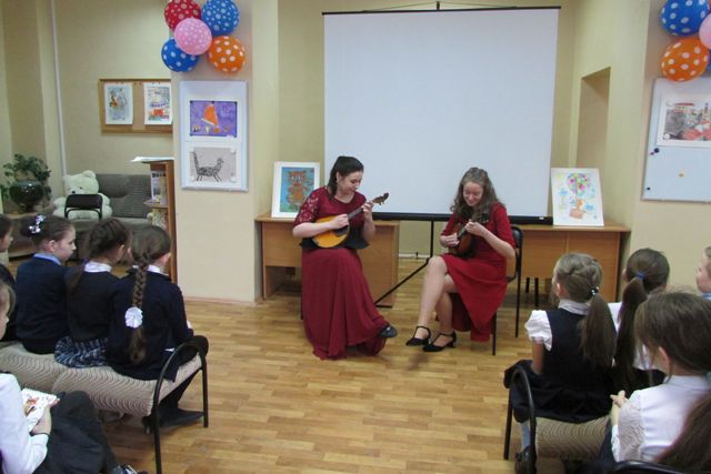 Сегодня юных читателей детской библиотеки им. А.П. Гайдара ждал музыкальный сюрприз – к ним в гости приехали артисты из Свердловской государственной детской филармонии. А привезла их в библиотеку заместитель директора филармонии Наталия Александровна Подкорытова.