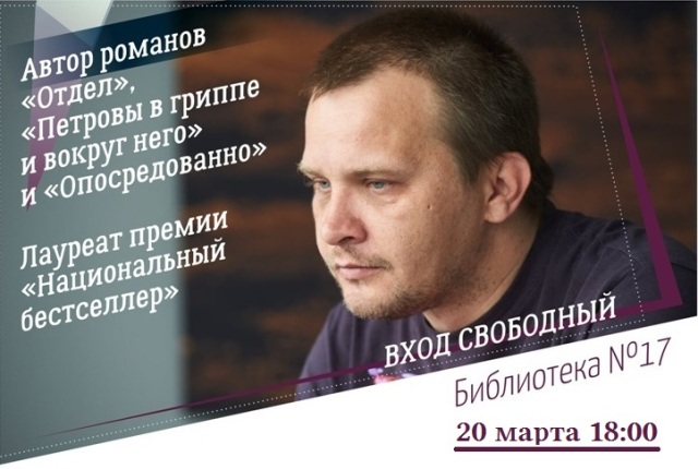 20 марта в 18:00 библиотеке №17 (пр. Ленина, 70) пройдёт встреча с автором бестселлера «Петровы в гриппе и вокруг него» Алексеем Сальниковым.