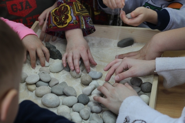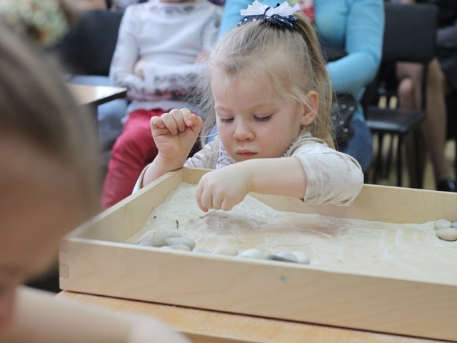 Во время концерта слушатели могли рисовать, конструировать и перебирать сенсорные материалы (сено, шишки, орехи, камни, песок, крахмал), выражая тем самым впечатления от музыки – живой игры на фортепиано.
