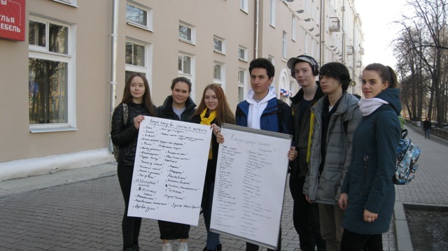 В течение дня волонтеры, студенты Медколледжа, прохожим на улицах предлагали ответить на два вопроса: ваша любимая книга и какую книгу вы читаете сейчас. Потом были подведены результаты опроса, составлен рейтинг. Любимые книги: на первом месте – «Гарри Поттер» Джоанн Роулинг, на втором – «Ведьмак» Сапковского, третье место разделили «Богатый папа, бедный папа», «Ходячий замок», «Над пропастью во ржи», «Портрет Дориана Грея», «Виноваты звезды» и «Пятьдесят оттенков серого». Какую книгу читают сейчас: на первом месте – «Оно» Стивена Кинга, на втором – «Мятная сказка» Александра Полярного, третье место поделили «Куриный бульон», «Если я останусь» Гейл Форман, «451 градус по Фаренгейту», «Гарри Поттер» и «Хроники Нарнии».
