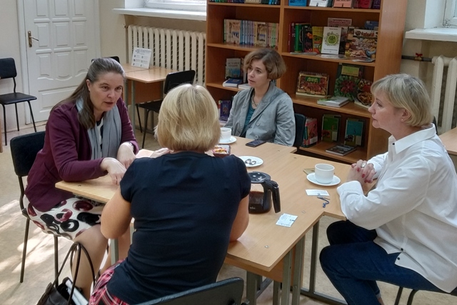 За чашкой кофе Янет Веррейзер, Марина Коваль и Ирина Потапова обсудили, как много общего у голландских и российских библиотек в сфере работы с электронными ресурсами. Встреча продолжалась почти 2 часа, и даже этого времени не хватило, чтобы обсудить все нюансы работы библиотек.