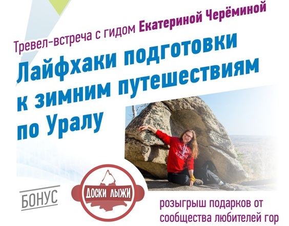 В Городском библиотечном информационном центре пройдет вторая тревел-встреча с бюро путешествий «Доски_Лыжи». 22 октября в 19:00 гид Екатерина Черёмина расскажет о подготовке к зимним путешествиям по Уралу.