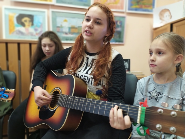 Сразу 9 акустических гитар и 17 звонких голосов звучали в уютной гостиной библиотеки №40. Музыкальная программа для ребят из клуба «Ровесник» и ДШИ №5 был наполнен бардовскими, рок-песнями и хорошим настроением.