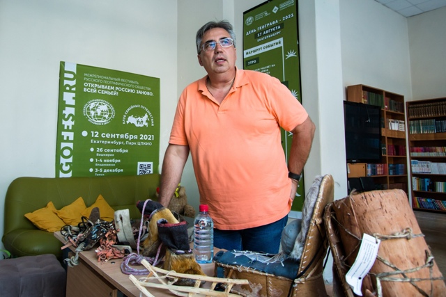 18 августа в библиотеке №17 прошла встреча с руководителем историко-этнографического парка «Земля Предков», членом Свердловского отделения РГО Алексеем Слепухиным. Он поделился историей создания этнопарка, рассказал, почему люди пришли именно на Средний Урал, как происходит смешение культур, почему важно знать культуру исчезающих народов и многое другое. Свое выступление Алексей Слепухин сопровождал демонстрацией музейных экспонатов, которые в конце встречи все могли внимательно рассмотреть, подержать в руках, а что-то и даже примерить на себя.