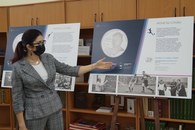 Выставка «Монеты славы» открылась в библиотек №6 им. К.Г. Паустовского. В экспозиции представлены информационные стенды с изображением памятных монет Банка России, а также книжная выставка, посвященная спорту и нумизматике.