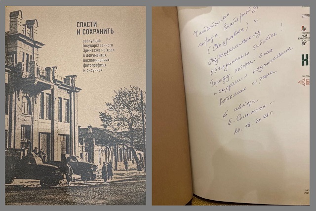 Издание содержит «Воспоминания, переписку, документы, в из архивов Эрмитажа, рассказывающие о том, как жил и работал филиал Эрмитажа в Свердловске. Это рассказ не только об Эрмитаже, но и о людях, которые смогли сберечь коллекции». Государственный Эрмитаж и Екатеринбургский музей изобразительных искусств вели работу над книгой на протяжении трех лет.Один из авторов-составителей Елена Юрьевна Соломаха, заместитель заведующего отделом рукописей и документального фонда Эрмитажа, подписала книгу для читателей наших библиотек! Благодарим Екатеринбургский музей изобразительных искусств за подаренные книги!