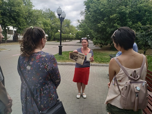 Городских путешественников ждало настоящее путешествие во времени, которое началось в фойе библиотеки. Им предложили окунуться в атмосферу конца 20х – тридцатых годов ХХ века, когда наш город, по словам посетившего его Владимира Маяковского, напоминал большую стройплощадку. Новое время требовало новых архитектурных решений, их предложили создатели конструктивизма. Участники экскурсии познакомились с принципами, которые легли в основу авангардного для тех времён стиля. Они вспомнили знаковые для Екатеринбурга конструктивистские памятники, а затем отправились в путь по центру города, чтобы познакомиться с некоторыми из них ближе.