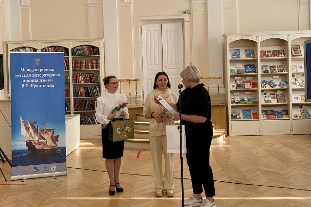 Главный библиограф МОБ Ирина Елисейкина вручила награду Татьяне Бойко из Минска за произведение «Сапфир». Автор получила диплом и памятные призы «За трогательную историю взросления, где доброта и мудрость берут верх над обидами и несправедливостью».