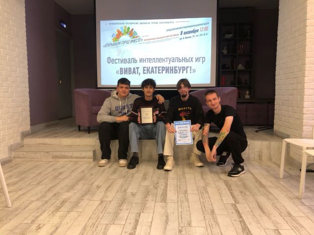 Отборочные туры интеллектуального турнира «Виват, Екатеринбург!» проходили на площадках 4 библиотек Муниципального объединения с 18 сентября по 3 октября. Финалистами стали 8 команд. В зависимости от возраста участников, финальное состязание в Городском библиотечном информационном центре прошло в двух номинациях – «Школьный зачёт» (участники до 18 лет) и «Общий зачёт» (участники от 18 до 25 лет). Всем претендентам на победу нужно было ответить на 45 вопросов, связанных с историей, искусством и культурой Екатеринбурга, с людьми, внесшими значительный вклад в развитие города.