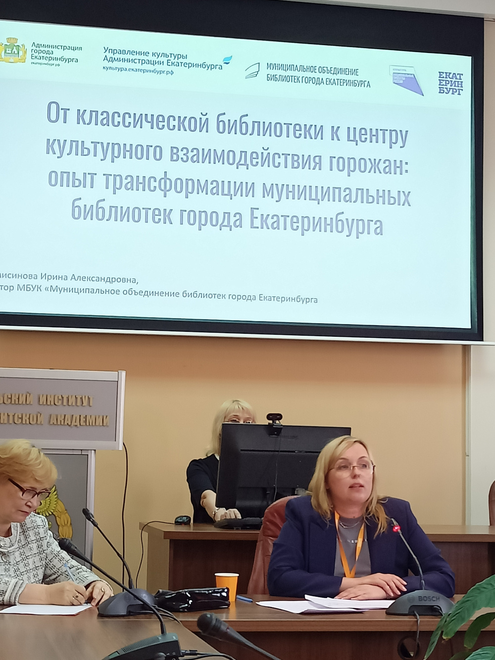 Открыл работу секции доклад Ирины Александровны Черемисиновой, директора Муниципального объединения библиотек Екатеринбурга «От классической библиотеки к центру культурного взаимодействия горожан». Ирина Александровна рассказала о трансформации библиотек в пространства получения знаний и подчеркнула, что сегодня современные библиотеки должны стать центрами культурной жизни и креативного развития в городе. Ее доклад привлек внимание аудитории к важности изменений в современных библиотеках и их роли в креативной индустрии.
