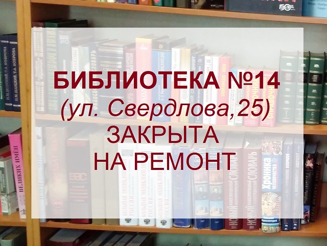 Библиотека №14 (ул. Свердлова, 25) с 1 июня 2024 года будет закрыта в связи с подготовкой к проведению ремонтных работ по сохранению объекта культурного наследия регионального значения «Ансамбль градостроительный. Дом жилой», в котором располагается библиотека.