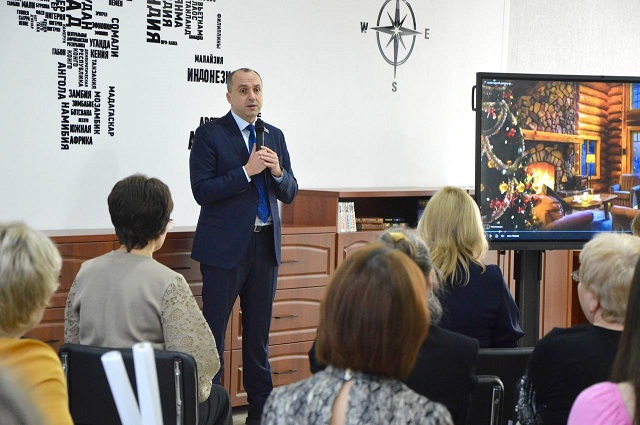 Поздравить всех пришел Михаил Клименко – заместитель председателя Законодательного Собрания Свердловской области и руководитель Штаба общественной поддержки Партии «Единая Россия»! Он отметил, как быстро развиваются библиотеки сегодня, подчеркнул важность и значимость наших межотраслевых проектов и поделился перспективами развития Екатеринбурга и Свердловской области. Михаил Николаевич поздравил сотрудников с Новым годом, пожелал успехов и подарил коллективу Библиотек Екатеринбурга новогодние подарки.