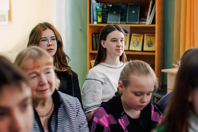 Участники мастерской для школьников «Повелители проектов» выступили инициаторами встречи с известным скульптором Константином Васильевичем Грюнбергом в библиотеке.
