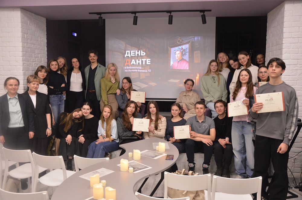 Предварило программу вручение сертификатов школьникам, сдавшим международный сертификационный экзамен по итальянскому языку PLIDA для юниоров. Этот экзамен проводится по всему миру, в России его принимают только в Москве, Тольятти, Екатеринбурге, Ростове и Санкт-Петербурге. Сертификаты вручили представители Комитета Общества Данте.