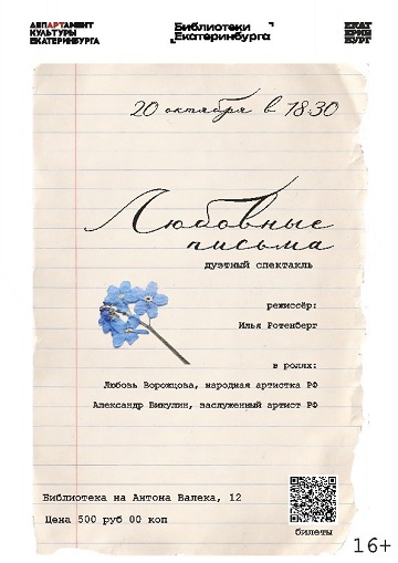 Дуэтный спектакль «Любовные письма» — это бенефис двух мастеров сцены: заслуженного артиста РФ Александра Викулина и народной артистки РФ Любови Ворожцовой в постановке Ильи Ротенберга.